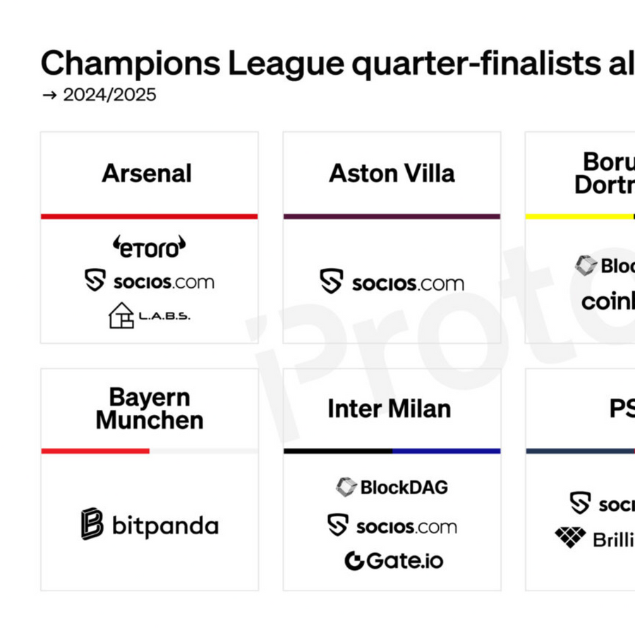 Arsenal, Aston Villa, PSG, and Inter have inked deals with Socios, while Coinbase and Bitpanda sponsor Dortmund and Bayern Munich.
